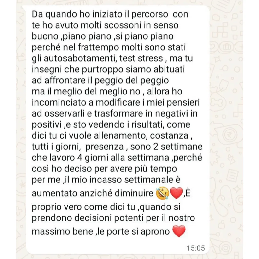 No. Accompagno sia donne che stanno già lavorando nel mondo del benessere, sia chi sta vivendo una fase di passaggio o desidera reinventarsi. Quello che conta non è il punto in cui sei, ma la tua disponibilità ad ascoltarti profondamente e a scegliere te stessa, con coraggio e presenza.