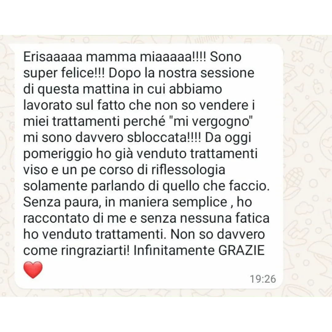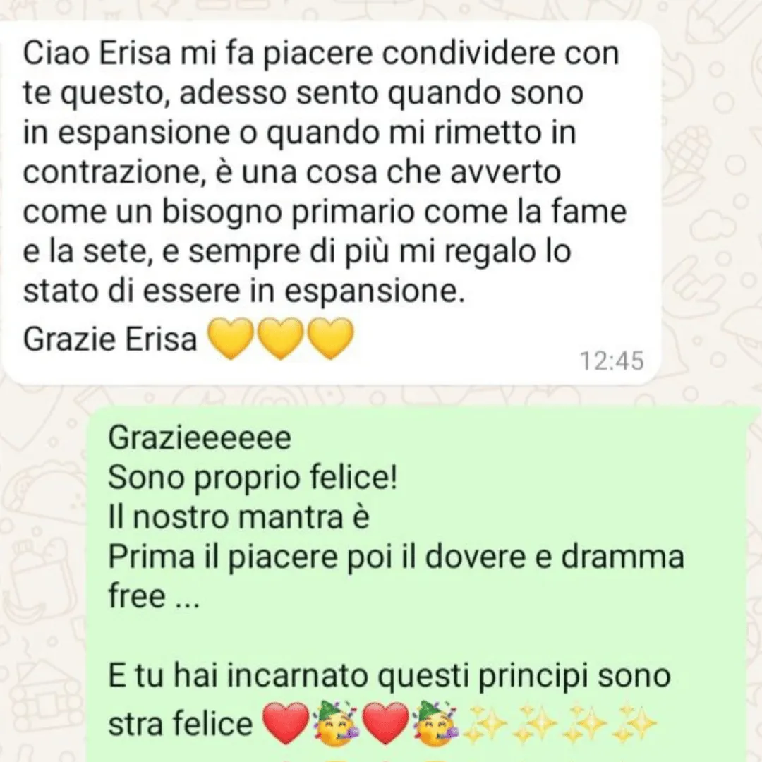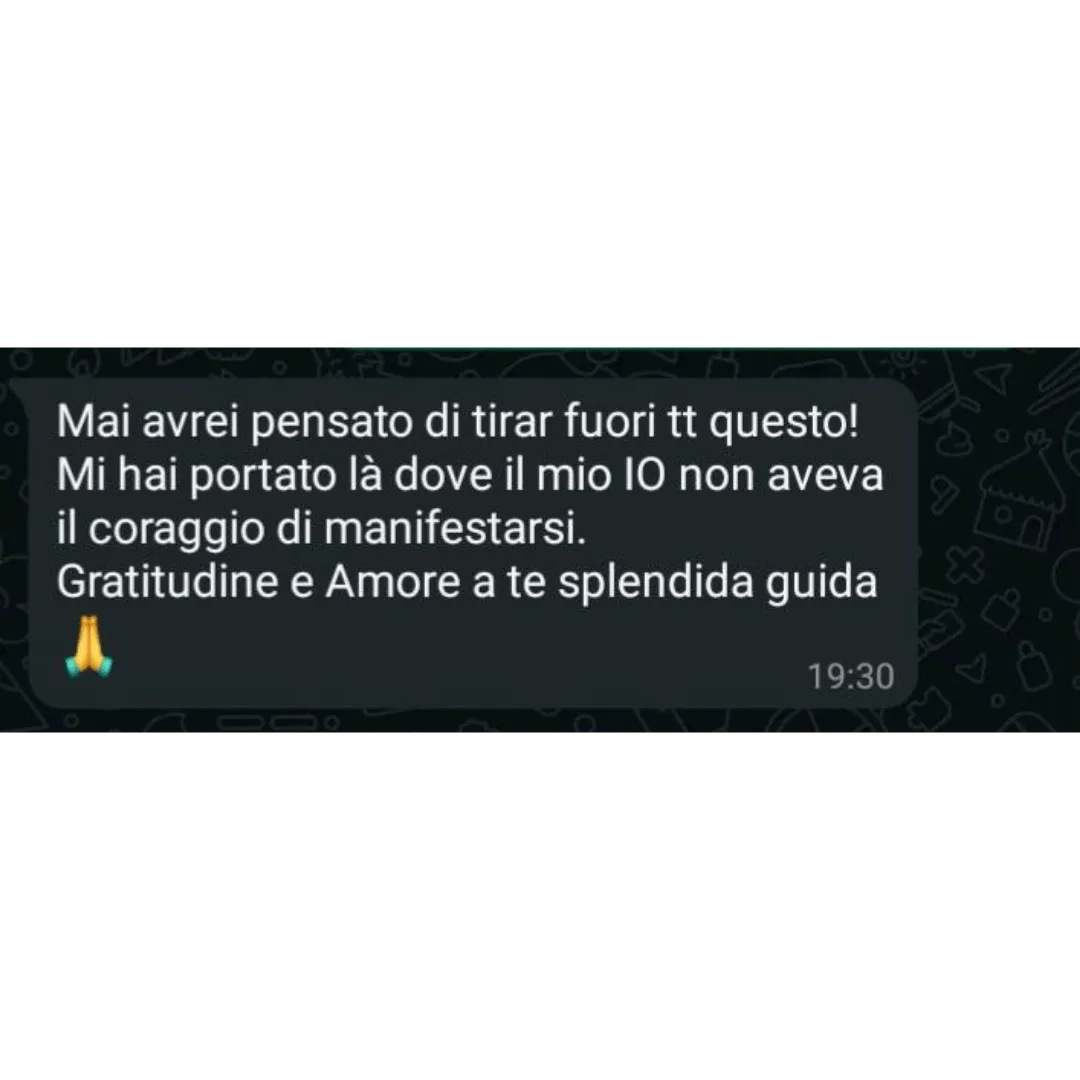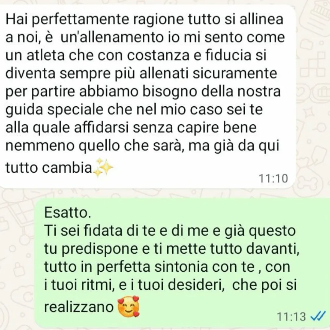 Grazie al tuo percorso mi sono resa conto che avevo tanti autosabottamenti. Subito dal primo mese ho iniziato a vedere già dei grossi miglioramenti...
